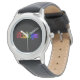 Kinder Edelstahluhr mit schwarzem Lederarmband