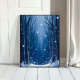 Falling Snow Blue Winter Forest Watercolor Painted Poster
