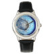 Uhr, Klassische Damenuhr mit schwarzen Lederarmband