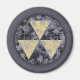 Grungy Fallout Schutzschild, schwarz/gelb über lila, stark bedrückt. Auf T - Shirt, Sweatshirts, Tasten, Geschenke.
