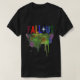 Der T - Shirt enthält das Wort "Fallout" in einem kühnen, bedrückten Schriftart. Jeder Buchstabe bricht mit einer anderen lebendigen Farbe auf und schafft so ein dynamisches und auffälliges Display. Der Hintergrund ist eine einfache, verwitterte Textur, die das postapokalyptische Ödland der Fallout Videospielserie hervorruft.