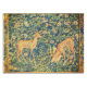 Hirsche, grüngelbe blühende Wirbel Blume digitale Dekoration aus antiken flämischen Tapisserien.