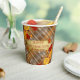 Personalisiertes Erntedank Papier Becher Design mit Kürbis, Blätter und roten Beeren auf einem Herbst karierten Hintergrund. In der Mitte des Designs befindet sich ein goldener Pinselstrich und ein vollständig anpassbarer Text. Zum Ändern verwenden Sie die Option Personalize. Weitere Änderungen, z. B. Änderungen am Schriftart, am Schriftart oder am Textlayout, können Sie mit der Option Design bearbeiten durchführen.