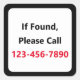 Wenn gefunden, bitte Anruf ist auf diesem schwarz-weißen Aufkleber. Sie können die Zahlen auf die richtige Telefonnummer ändern. Der Aufkleber ist weiß mit einem schwarzen Rand. Sie können den Text bearbeiten, um eine personalisierte Nachricht anzuzeigen.