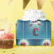 Eine blaue Geschenkboxen mit rot-weißem Fallschirm fällt durch einen sternenförmigen Nachthimmel, während der Vollmond hell im Hintergrund leuchtet.