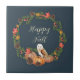 Falluhu und Kürbisse mit anpassbarem Text Fliese
