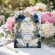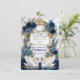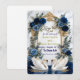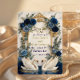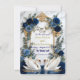 Bestimmen Sie den Ton für eine Märchenfeier mit dieser anspruchsvollen Schreibwarenserie. Perfekt für die Ankündigung einer formellen königsblauen Hochzeit mit eleganter Romantik. Dieses Design zeigt ein Paar elegante weiße Schwäne, die einander zugewandt sind und über einem reflektierenden Wassereffekt eine sanfte Herzform bilden. Die Szene wird von einem aufwendigen, faux-goldfolienverzierten Barockwappen gerahmt, das mit üppigen Wasserfarbenblumen verwoben ist. Die botanische Anordnung zeigt tiefe marineblaue und königsblaue Rosen, akzentuiert durch staubblaue Blüten und weiche, salbeigrüne Eukalyptusblätter. Der Hintergrund simuliert eine weiche graue Marmorsteintextur für eine luxuriöse Oberfläche. Die Typografie kombiniert eine fließende, handgeschriebene Kalligrafieschrift mit