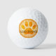 Niedlicher Vintager Cartoon-Stil Hunde Pfoten Druck und Sonnenstrahlen mit beängstigender Wirkung. Aquarellfarben im Hintergrund. Eigene Golfbälle. Ändern des Namens, um ihn anzupassen. Geschenkidee für Hundefreunde.