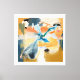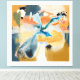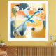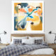 Eine lebhafte Mischung aus Farben und Formen harmoniert mit einer abstrakten Komposition in Blau-, Orange- und Gelbtönen.