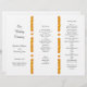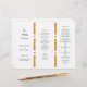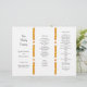 Falten Sie diese Hochzeitsvorschau in dritter nach dem Kauf. Zwei Blätter in Fallfarbe teilen die Abschnitte. Schwarzer Vorlagentext lässt sich leicht ändern und für Ihre Zeremonie anpassen. Es öffnet sich wie ein Akkordeon mit allen Drucken - Bilder und Text - auf EINER SEITE NUR. Wählen Sie eine Papiersorte aus, gerecycelt wird angezeigt.