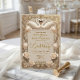 Versetzen Sie Ihre Gäste in ein Reich zeitloser Romantik mit diesem königlichen Design, das perfekt für eine formelle Märchenhochzeit ist. Das elegante Zusammenspiel von sanften Champagner-Tönen und aufwendiger Ornamentik beschwört den Luxus des Goldenen Zeitalters herauf, ohne die hohen Kosten. Diese Schreibwarenserie setzt einen anspruchsvollen Ton und verspricht eine unvergessliche Feier der Liebe und Einheit.Dies ist eine flach gedruckte Karte mit einer hochauflösenden digitalen Simulation von taktilen Texturen; es gibt keine tatsächliche geprägte Folie oder Stoff. Das Design wird von einem symmetrischen Art Nouveau-Rahmen in einem faux-metallischen Gold-Effekt verankert, der aufwendige Filigranarbeiten und blühende weiße Rosen und Tulpen enthält. Oben in der Mitte stehen sich zwei realistische weiße Schwäne gegenüber, deren Hälse sich zu einem Herz formen. Der Hintergrund imitiert den Look von gerafftem Satin in einem champagnerfarbenen Beigeton, überlagert von einem schwachen Diamantgittermuster und einem zentralen geometr