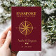 Feiern Sie Ihre Liebe mit dieser eleganten Hochzeitseinladung im Reisepass-Design, die einen stilvollen navyblauen Hintergrund mit einem faux-goldenen Kompass-Design aufweist. Perfekt für eine reiseorientierte Hochzeit, verleiht diese einzigartige Einladung Ihrem besonderen Tag einen Hauch von Abenteuer und Raffinesse.