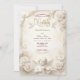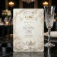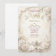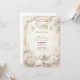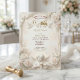 Verkünden Sie Ihre heilige Verbindung mit der zeitlosen Größe der Renaissance. Dieses Design verfügt über himmlische Ästhetik und üppige Blumen für einen wahrhaft romantischen Ton. Eine aufwendige visuelle Komposition, inspiriert von der klassischen europäischen Architektur. Das Design zeigt einen falschen skulpturalen Relief-Effekt, der das Aussehen von geschnitztem Stein und architektonischen Formen in sanften Champagner- und Beigetönen simuliert. Ein zentrales Vignette zeigt eine zarte Illustration eines Cherubs, der Violine spielt, begleitet von weißen Tauben im Flug und üppigen Trauben aus cremefarbenen und rosa Rosen. Der Hintergrund imitiert eine texturierte Marmoroberfläche, während die Typografie den Glanz von Goldblatt simuliert. Dies ist ein flach gedrucktes Bild mit einem Faux-Stein- und Goldeffekt, nicht echtes Reliefmaterial, Präged