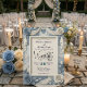 Verleihen Sie Ihrer romantischen Frühlingshochzeit mit diesem staubblauen floralen Faux-Relief-Design einen besonderen Akzent, das atemberaubende Papercraft-Illusionen und elegante Typografie aufweist.