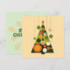 Diese Weihnachtskarte zeigt eine einzigartige, im Stil der Mitte des 20. Jahrhunderts gestaltete Illustration eines Weihnachtsbaums und Weihnachtsschmucks.