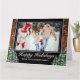 Geklappte Feiertage Gruß Postkarte mit Ihrem Foto. Rustikales braunes Holz, schneebedeckter Hintergrund und schneebedeckter Wald. Gemütlicher Vintager Landstil. In unserem Shop sind weitere Artikel in diesem Stil erhältlich. Sie können das Design weiter bearbeiten, Farben, Schriftart ändern und zusätzlichen Text hinzufügen, indem Sie auf den Link "Weiter anpassen" klicken.
