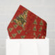 Freuen Sie sich auf ein fröhliches und elegantes Weihnachtspapier mit einem schönen grünen Weihnachtsbaum, der mit farbenfrohen Ornamenten und strahlenden Lichtern über rotem Hintergrund verziert ist.