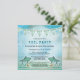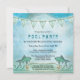 Pool Party Einladung mit Wellen und Fischen auf einem malerischen blauen Hintergrund mit Bollen. Diese Einladung funktioniert sowohl für Erwachsene als auch für Familien und Kinder. Das obere Bild kann gelöscht werden, um das Etikett zu entfernen, wenn Sie es nicht benötigen.
