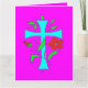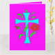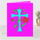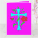 Im Gesicht rötlich rosa Blume und hellblaues Kreuz Muster