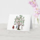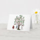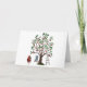 Humorale Grußkarte mit Hühnchen auf einer Schaukel in einem Apfelgarten
