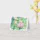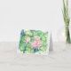 Folded greeting card with repro of original watercolor artwork of pink waterlilies. Blank Nachricht.