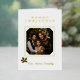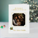 Real Gold Foil Accents Holiday Fotokarte wird mit einem festlichen Weihnachtsakzent und mit einem Gruß von Ihrer Familie gezeigt. Passen Sie diese Karte an, fügen Sie Ihr Foto hinzu und ändern Sie den Text in Ihren Familiennamen. Anpassen mit dieser Vorlage. Lizenziertes Bild
