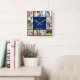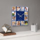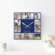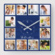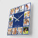 Familie 12 Fotos Collage Blue Wood Quadratische Wanduhr