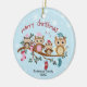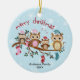 Das wird ein ewiger Wille sein! Viererfamilie. Eine Eule hat einen roten Hut auf und kann ein Junge oder ein Mädchen sein, nur mit dem Namen personalisieren, die andere trägt einen rosa Hut. Adorable Eulen, die auf einem Ast sitzen und Weihnachtsmannmützen tragen. Personalisieren Sie mit Namen auf den Hüten.