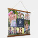 Moderne marineblaue Foto Collage schwarz hängende Wandteppiche mit Ihren 6 Lieblingsbildern von Familie, Freunden, Enkeln, Haustieren, Erinnerungen, etc. Fügen Sie Ihre Monogramm Initial und Name in eleganter weißer Typografie hinzu.