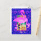 Familie der rosa Flamingos Muscheln und Hibiskus K Postkarte
