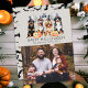 Ein glückliches Halloween-Design mit dem individuellen Foto und den großen Hunderassen: Rottweiler, Pit bull, Labradoodle oder Goldendoodle, ein Berner Hund, umgeben von niedlichen Kürbissen, einer Fledermaus und grauen Ballons. Wünschen Sie Familie und Freunde ein glückliches Halloween mit dieser personalisierten Karte.
