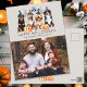 Ein glückliches Halloween-Design mit dem individuellen Foto und den großen Hunderassen: Rottweiler, Pit bull, Labradoodle oder Goldendoodle, ein Berner Hund, umgeben von niedlichen Kürbissen, einer Fledermaus und grauen Ballons. Wünschen Sie Familie und Freunde ein glückliches Halloween mit dieser personalisierten Karte.