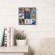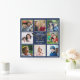 Familie ist alles 8 Foto Collage Name Blau Quadratische Wanduhr