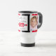 Kaffee oder Tee weiße Reisetasche Geschenk. Ersetzen Sie die beiden Fotos durch Ihr eigenes. Rot und Schwarz mit Streifen. Familie ist Liebe ein Spaß.