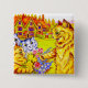 Button mit Louis Wains Tiermalerei Familie der Katzen im Garten (1860-1939). Ein anthropomorphisierter Katzenelternteil hat eine rote Rose und ein orangefarbenes Kätzchen fasst einen Blumenstrauß mit blauen, gelben und roten Blume. Zwei blaue Kätzchen sehen sich an. Ein wunderbares Geschenk für Katzenliebhaber und englische Kunst.
