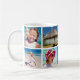 Denken Sie an Ihren Familienurlaub mit dieser modernen Collage Kaffee Tasse mit Platz für fünf Ihrer Lieblings-Reise-Fotos. Unten befindet sich eine blaue Box für Ihren eigenen Text, wie z.B. das Jahr Ihres Urlaubs, Ihren Familiennamen und/oder Ihr Reiseziel. Diese wunderschöne Kaffeepause wird für viele Jahre ein geschätzter Sake sein.