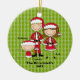 Das wird ein ewiges Vergnügen sein! Es ist eine liebenswerte Familie, gekleidet in Rot-Santa-Outfits und Hüten. Es hat einen hellgrünen Hintergrund mit dunkleren grünen Punkten in einer Reihe. Es gibt einen Vater, eine Mama und einen kleinen Jungen. Karo in den anderen Familienkombinationen und Ornamenten in unserem Shop. ©JW Illustrations