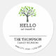 Der Familien-Wiedersehennamen-Umbauaufkleber, der einen Baum, "hallo mein Name kennzeichnet, ist" und eine Stelle, damit Gäste in ihren Namen schreiben. Addieren Sie zwei Linien kundenspezifischen des Textes Familiennamen unten -, Datum, Standort, etc.