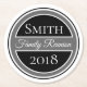 Rundes schwarzes und graues Familien-Wiedersehen-Abzeichen trimmte mit den weißen und schwarzen Konturen. Dieses Familien-Ansammlungs-Andenkengeschenk kann mit Ihrem eigenen Familiennamen, Ereignisinformationen und Jahr personalisiert sein.