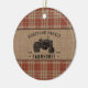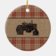 Ein wunderschönes, rustikales Keramik-Ornament mit Familienname und "Bauernhaus", Ranch, Hausmeister oder anderen Wunschtexten und einem feststehenden Datum. Dieses einzigartige, individuelle Design zeigt handgezeichnete Kunstwerke eines Vintagen Bauerntraktors auf einem Druckunterdruck im Stilstil und umgeben von wunderschönen Landroten und Khaki kariert. Eine charmante Ergänzung zu Ihrem Weihnachtsbaum und der Gestaltung Ihres Urlaubs. Um mehr Designs wie dieses zu sehen, besuchen Sie bitte meinen Shop hier unter "Zazzle.com/Rustic_Charm". Danke.