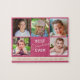 Geben Sie Ihrer Großmutter dieses lustige Familienrätsel für jeden Anlass..Geburtstag, Weihnachten oder Großeltern. Personalisieren Sie dies mit 5 Fotos ihrer Enkel. "Best Oma Ever" erscheint in einer Kombination aus schlichtem Text und Drehbuch für moderne Typografie. Das Puzzle bietet Himbeerrosa Hintergrund.