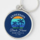 Familienname Beach House Summer Palm Trees Sunset Retro Stil Navy Blue Schlüsselanhänger. Personalisieren Sie mit Ihrem Familiennamen, Standort, Jahr oder Datum festgelegt und mehr.