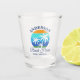 Familienname Beach House Sommerpalme Bäume Sunset Retro Stil Shot Glass. Personalisieren Sie mit Ihrem Familiennamen, Standort und mehr. Navy Blue Text oder wählen Sie Ihre Farbe.