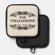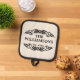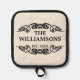 Entdecken Sie einen einzigartigen Topfhalter mit einem eleganten und stilvollen Set aus schwarzem Typografie-Schriftzeichen vor einer cremefarbenen Elfenbeinkulisse, das mit dem Nachnamen Ihrer Familie in einem schwarzen Typografie-Stil auf einem cremefarbenen Elfenbeinhintergrund angepasst werden kann. Geben Sie das Datum ein, an dem Ihre Familie gegründet wurde, um ein Objekt zu erstellen, das so einzigartig ist wie Ihr kollektives Erbe. Dieses charmante, dekorative und modische Design ist sowohl für den Hausbäcker als auch für den beruflichen Koch ideal.