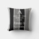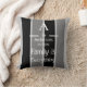 Familie ist alles Kissen, Kissen. Familienname im Jahr festgelegt. Schwarze und graue Streifen auf grauem Hintergrund. Geschenkidee
