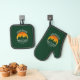 Familienname Kabine Pine Trees Sunset Green Ofenhandschuh & Topflappen-Set