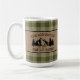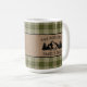 Eine schöne, rustikale Coffeeshure, große Tasse mit Familienname und Hütte, Seehaus, Hütte oder anderen Wunschtexten mit feststehendem Datum. Dieses einzigartige, individuell gestaltete Design besticht durch eine Silhouette von Bäumen und Bergen, die sich auf einem Hügel befinden und von einem wunderschönen französischen Land umgeben sind, das in sanften Schattierungen von Salbei-Grün kariert ist. Eine charmante Ergänzung zu Ihrer Wohngestaltung. Besuchen Sie auch meinen Designerladen und sehen Sie sich weitere Artikel und Designs wie dieses an. Danke.