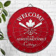 Super fun "Willkommen in der Hütte des Sees" maßgeschneiderte Dartscheibe mit patriotischem kanadischem Ahornblatt-Design mit gekreuzten Ohren und Anker. Ändern Sie den Namen, das Jahr und den Namen Ihres Urlaubs (Strandhaus, Hütte, Ferienhaus, etc.), um dies zu einem wunderbaren Geschenk zu machen.