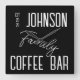 Das ist ein personalisiertes, familiäres Design, ein Thema für Kaffeewagen. Dieses moderne Design ist in klassischem Schwarz/Weiß gehalten, mit stilvoller Schrift-Typografie. Es hat Platz für Sie, um Ihren Familiennamen und das etablierte Jahr hinzuzufügen. Ideal für Ihre Bar oder Ihre Familienküche und ideal als personalisiertes Haus Erwärmung Geschenk. Um Ihren Namen zu personalisieren, tragen Sie ihn in das Textfeld ein. So ändern Sie die Farbe oder den Schriftart Karo aus dem Design-Editing-Tool. Für jede Hilfe bei der Personalisierung oder für ein individuelles Design, schreiben Sie mir via zazzle Chat.
