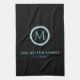 Familienname | Monogramm | Datum | Schwarz und Aqu Geschirrtuch